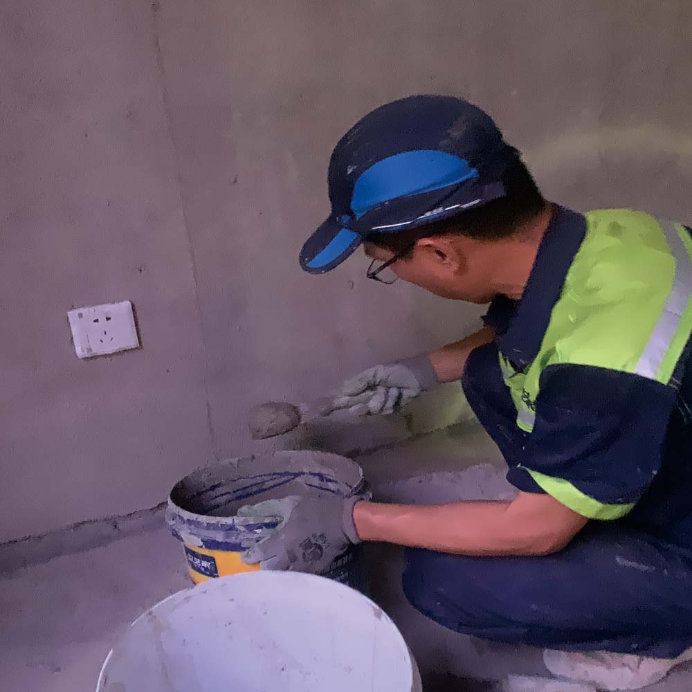 负压面防水层施工: 针对背水面(室内侧)的墙面、地面渗水。使用高粘结强度、耐水压的刚性或柔性防水材料(如聚合物水泥防水砂浆、渗透结晶、特种防水涂料等),形成牢固防水屏障。适用于: 大面积慢渗、墙面洇湿。